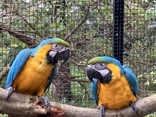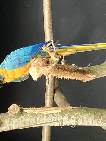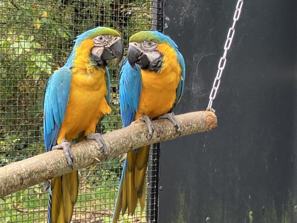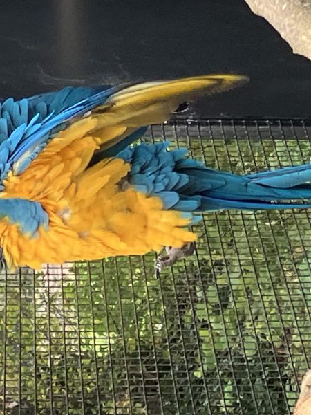 Wegens niet op komen dagen van koper nogmaals.. Mooi koppel blauwgele van 2024-2023, tam maar niet handtam, praten een beetje, geheel compleet en goed in de veren, man heeft een paar afgebroken staartveren.